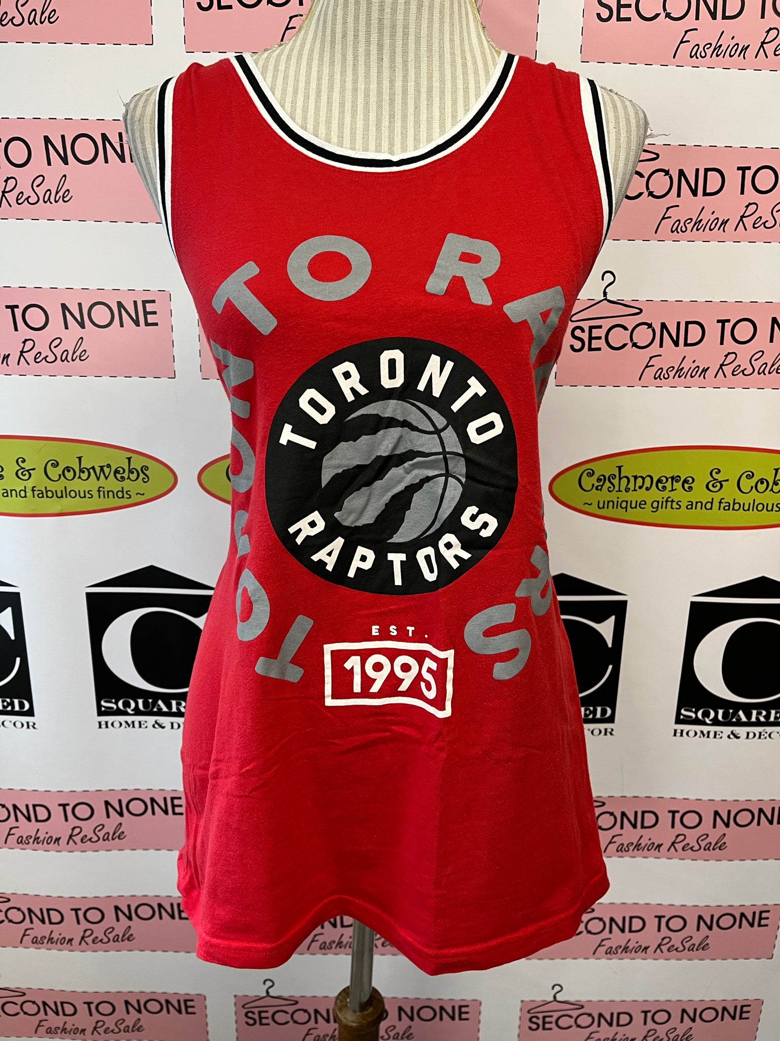 Rock your Raptors pride with this sleeveless essential. Crafted from stretchy, soft cotton that moves with you, it features bold white and black trim framing the neckline and armholes for a sharp, vintage-inspired look. Official NBA merchandise that's perfect for game day, the gym, or casual wear. A timeless piece for any Toronto fan's collection. Size L.