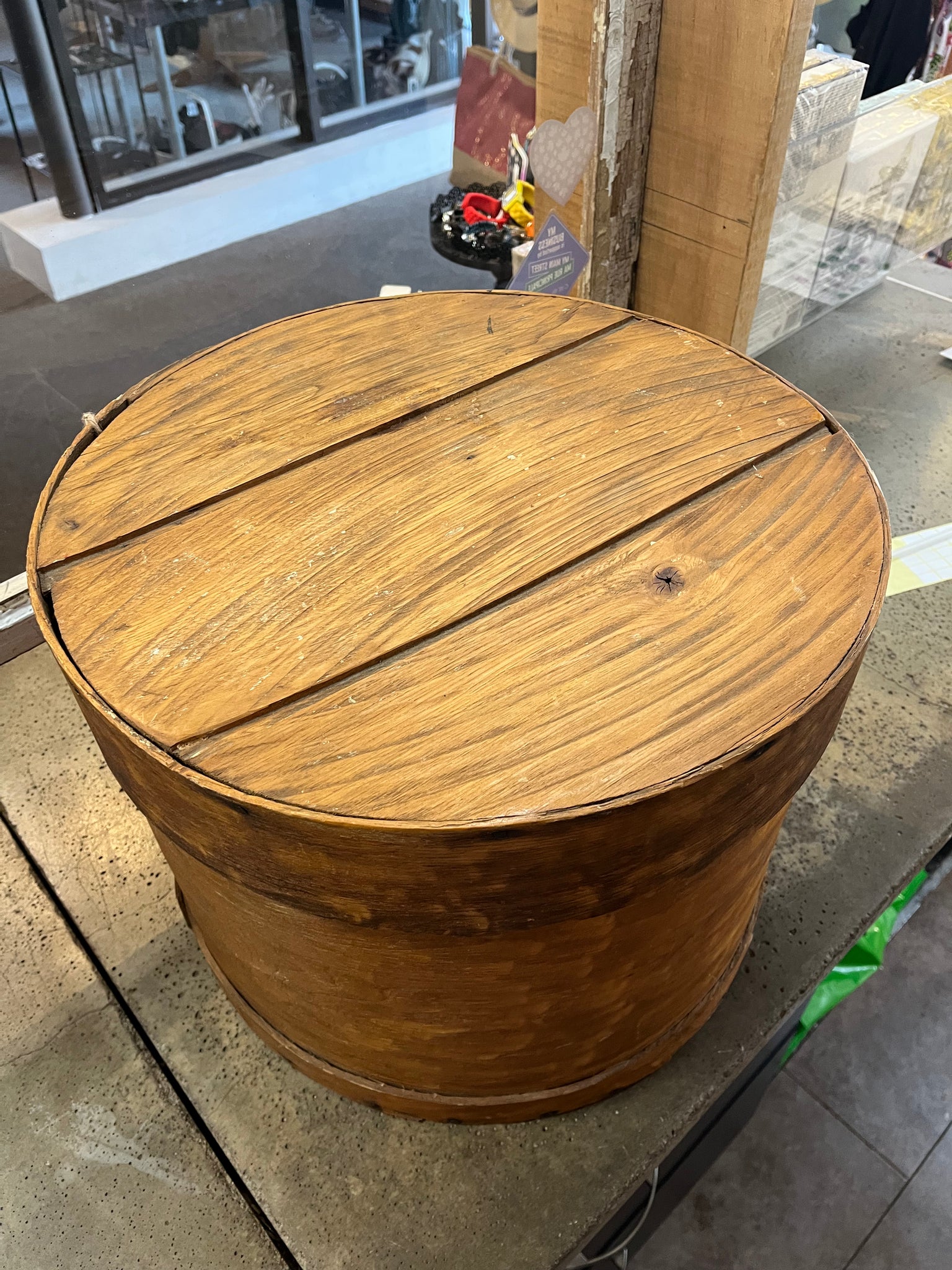 Transform your home into a charming and rustic space with our Vintage Cheese Barrel. This well-kept, wooden barrel features a removable lid and makes for a unique and versatile decor piece. Use it as a side table or lamp base for a touch of vintage flair. Elevate your space with this must-have item!