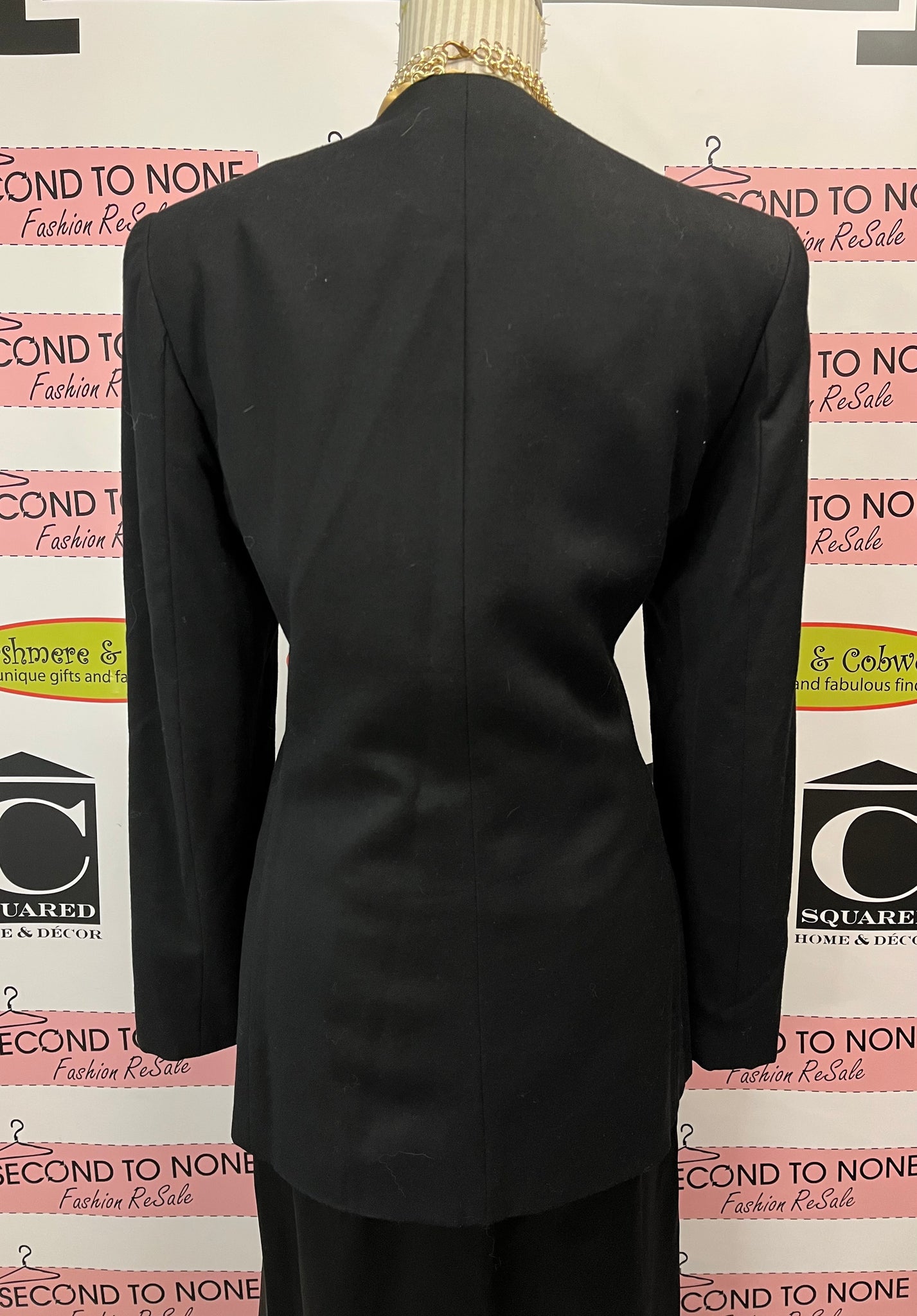 Throw on this fabulous vintage Giavanni Biagiotti blazer and instantly feel like you've stepped out of a chic 80s film. The rich black wool drapes beautifully, while those striking black and gold buttons steal the show with serious personality. Rock the v-neckline, stash your essentials in three pockets, and enjoy the polished comfort of full lining. Whether you're dressing up or dressing down, this double-breasted wonder is your ticket to effortless sophistication with a wink and a smile.