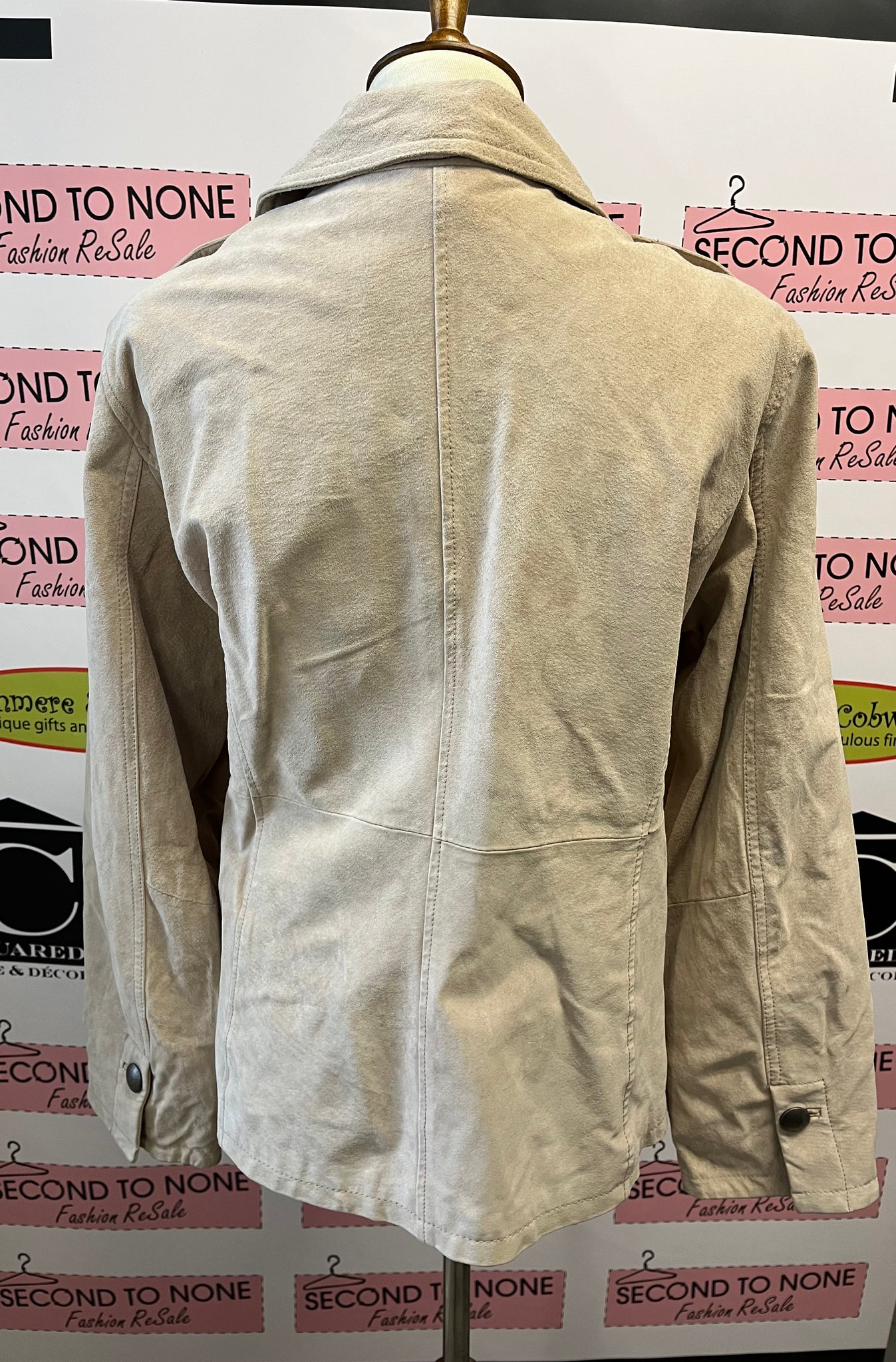 This Vintage Guillaume Light Seude Jacket is a stunning piece that will elevate your wardrobe. Made of soft beige suede, it features a button front, button pockets, and military shoulder details for a stylish and versatile look. Whether worn as a suit jacket or outerwear layer, it's sure to make a statement.