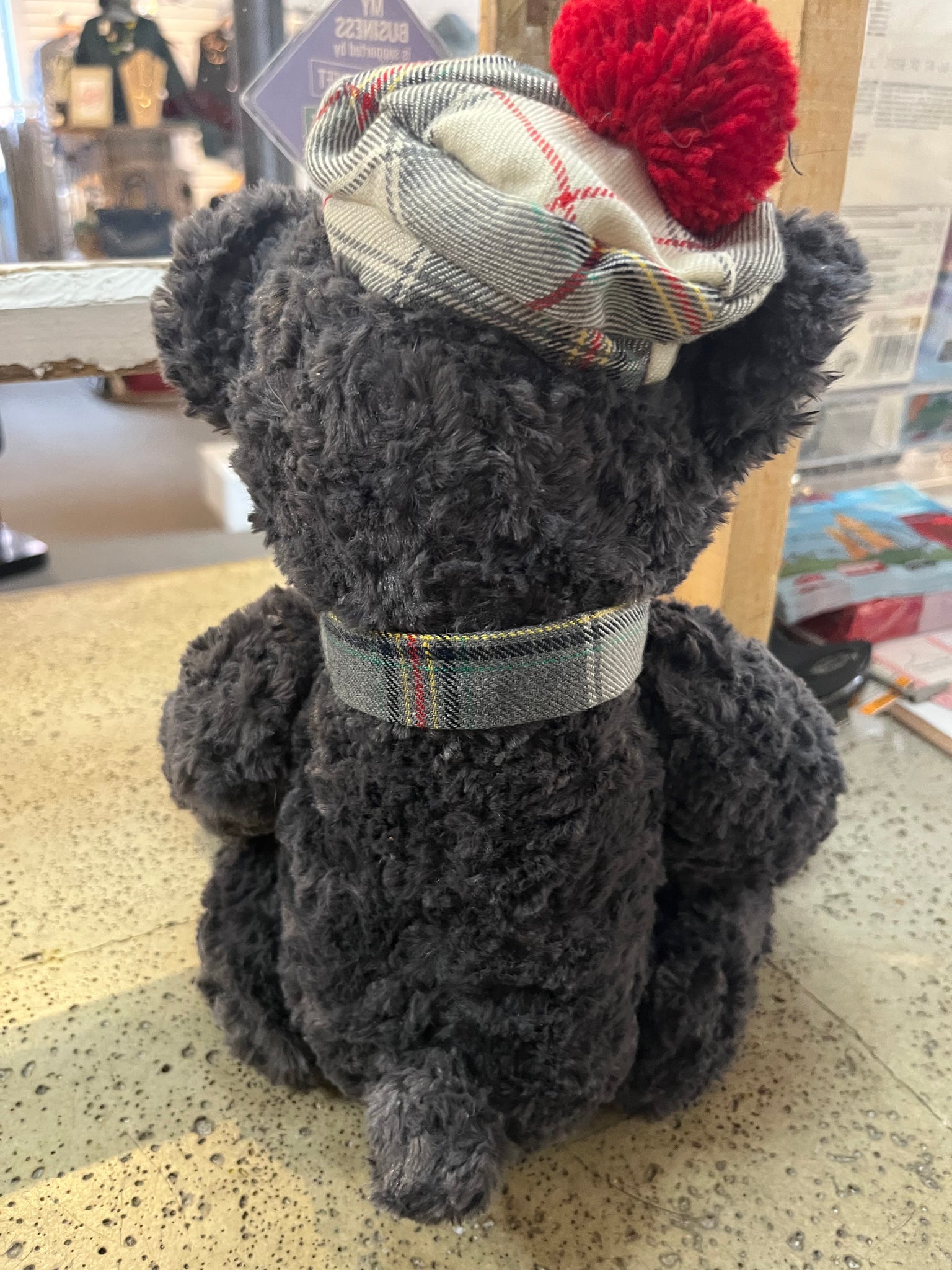 Indulge in luxury with our exclusive 2015 Teddy Bear from Hudson Bay Company. Adorned with a tartan scarf and tam, this bear is a timeless classic with its iconic HBC stripes label. In great condition, it's the perfect addition to your collection.  Sits 12" tall.