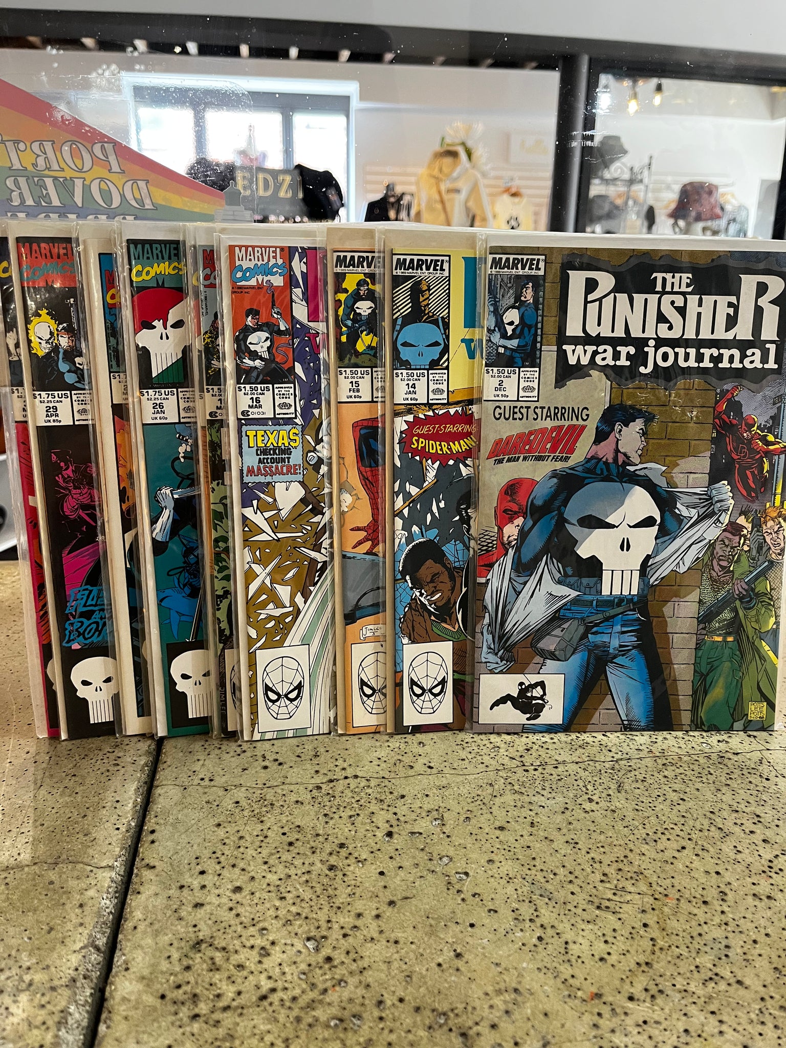 Step back into the gritty world of the 1980s and 90s with this collection of vintage Marvel Comics featuring The Punisher War Journals. Each issue is a collectible gem, carefully preserved in protective covers to keep Frank Castle’s relentless justice as fresh as ever. Whether you’re a longtime fan or a new recruit, these classic tales pack a punch of nostalgia and action that’s perfect for your comic stash. Choose from 12 thrilling editions and let the war journal adventures begin!