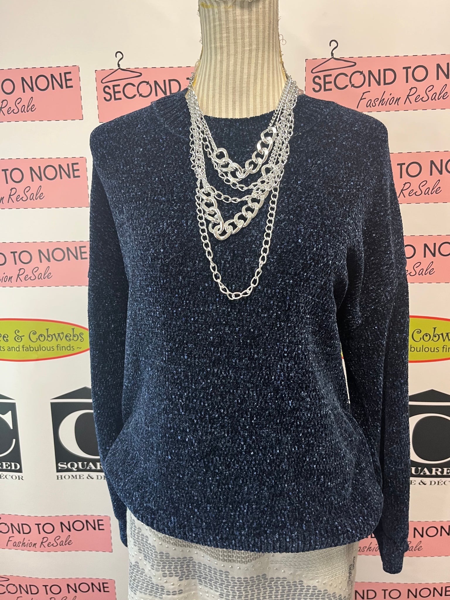 Wrap yourself in cozy charm with this vintage Penman's chenille sweater in a gorgeous deep navy dotted with playful light blue specs. Its longer tunic length makes it perfect for layering—whether you want extra warmth or a stylish statement. Pair it effortlessly with pants or a skirt for a look that’s as versatile as it is comfy. 100% polyester